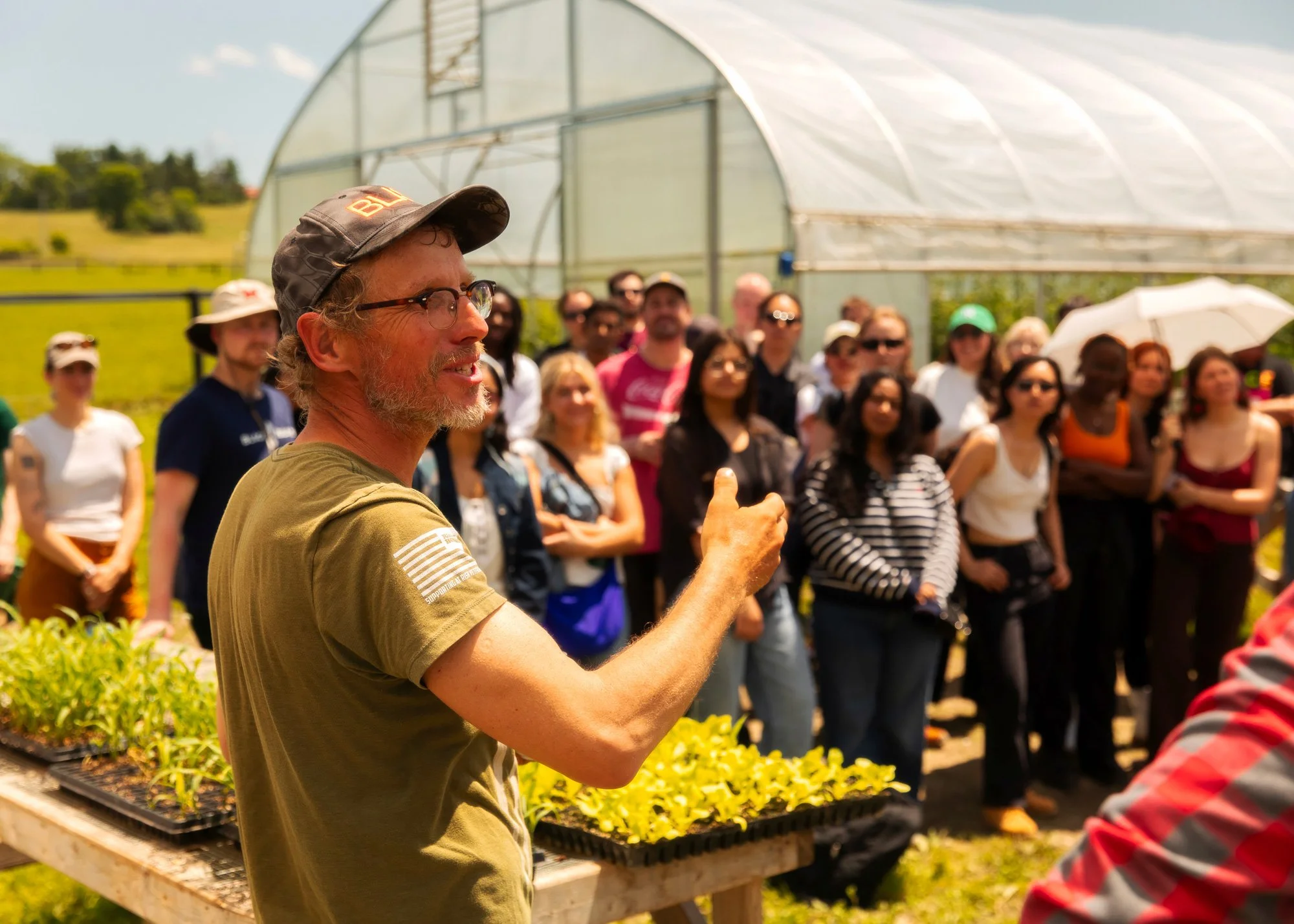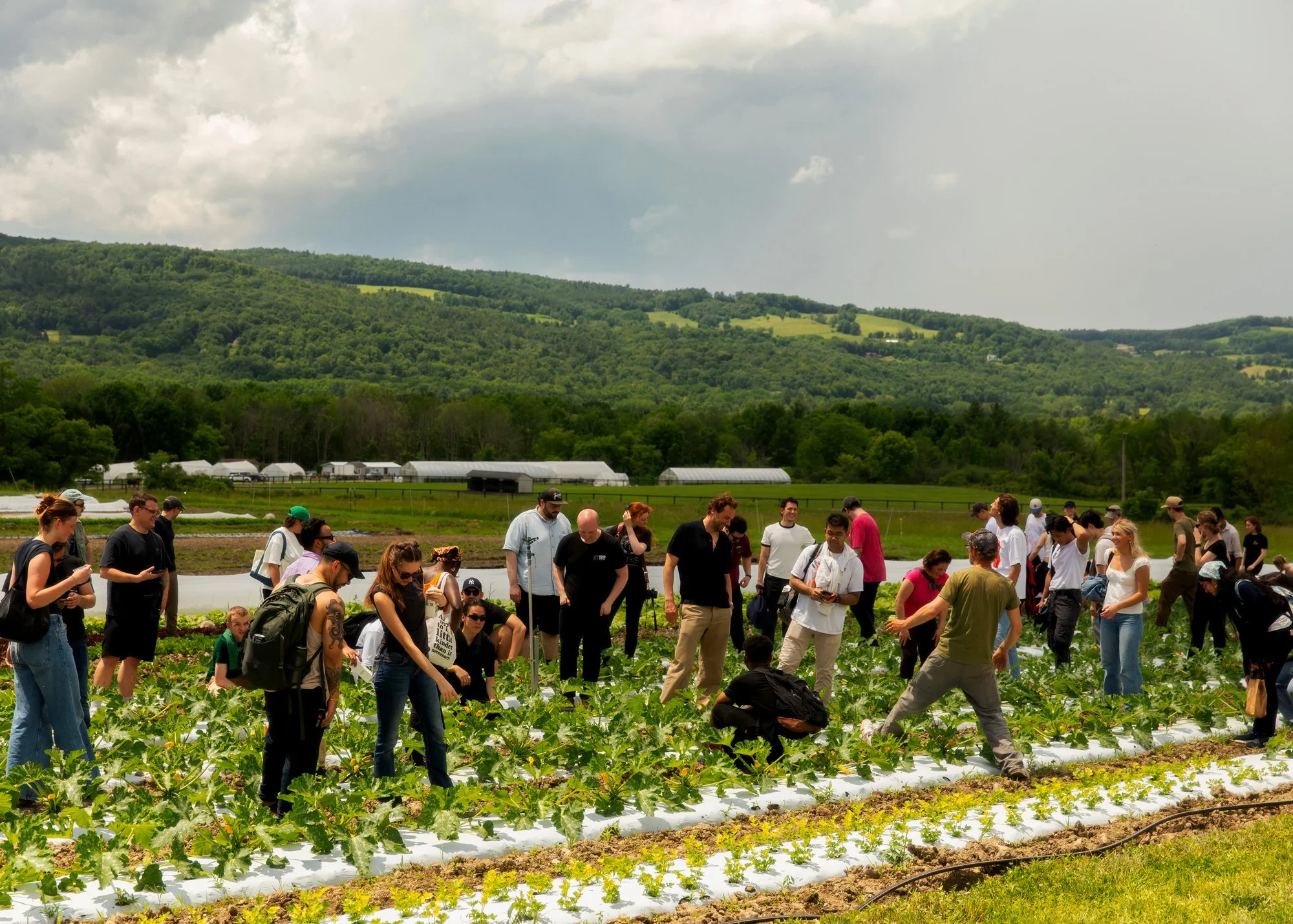 On a sunny day in late June, over 80 members of our team from the kitchen and dining room drove up to Magic Farms in Hoosick, New York, to meet Eleven Madison Park’s farmer, Maciek Kobielski, and see first-hand all the delicious produce that he has been growing for our current and upcoming menus.